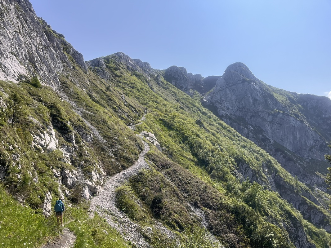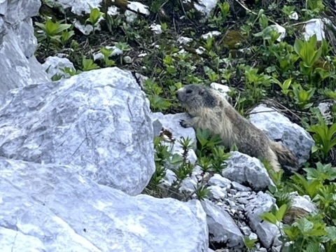 Am nächsten Tag geht es über das Massiv des Triglavs nach Trenta. Am Morgen genießen wir dabei den noch schattigen Weg und beobachten pummelige Murmeltiere und flinke Gämse.