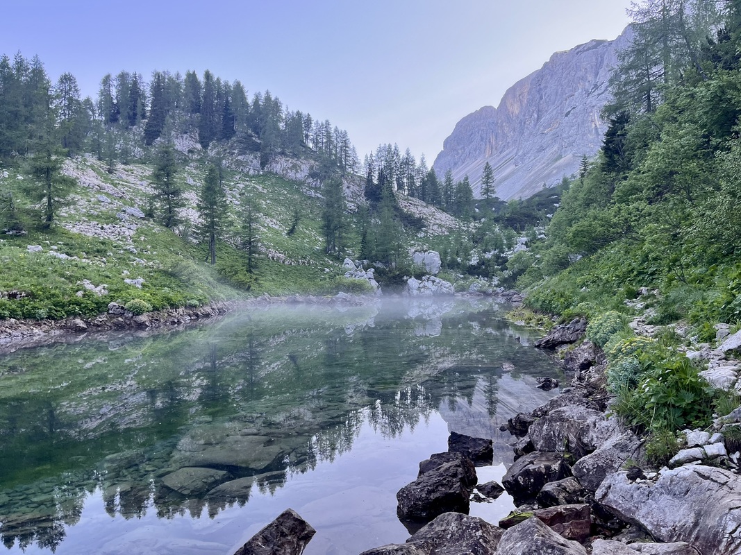 Am Abend schlafen wir auf einer weiteren Hütte, die märchenhaft an den Triglaver Seen liegt und erholen uns dort von über 26km und 1300 hm von Wanderung.