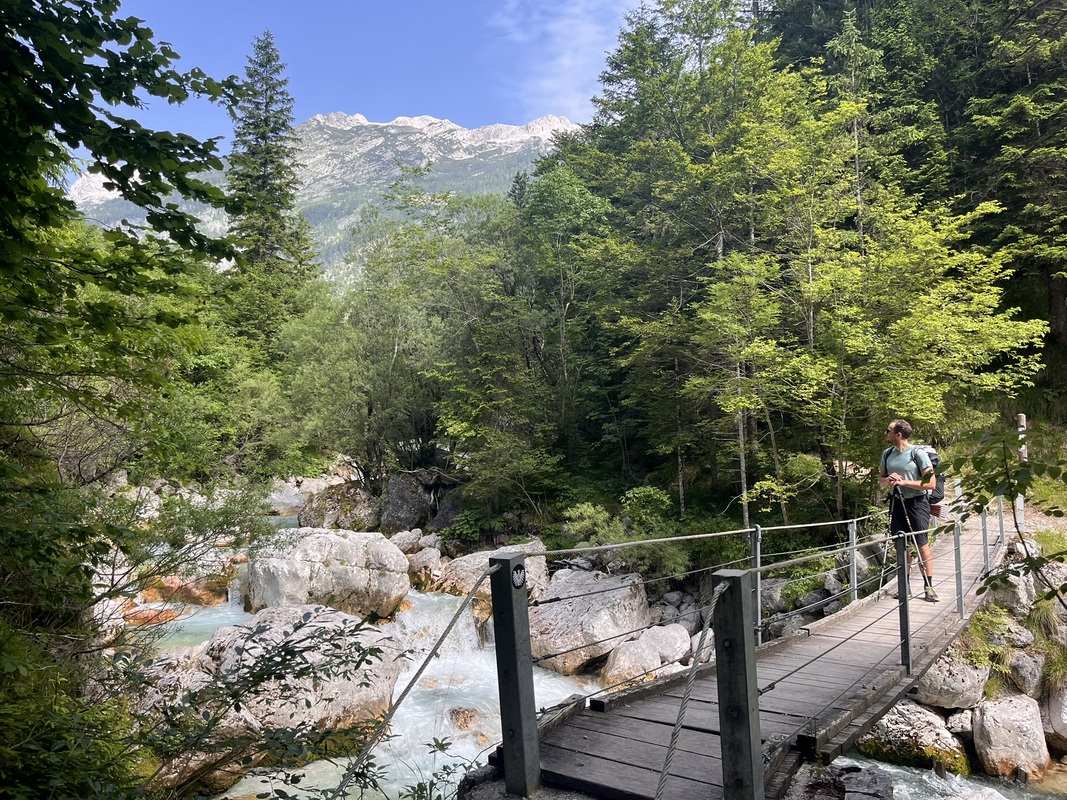 Am Abend schlafen wir auf einem netten Campingplatz, direkt neben dem Fluss Soča. Unsere Füße sind nach 2000 hm Abstieg auch fertig und wir freuen uns auf die erste Dusche seit dem letzten Pausentag.