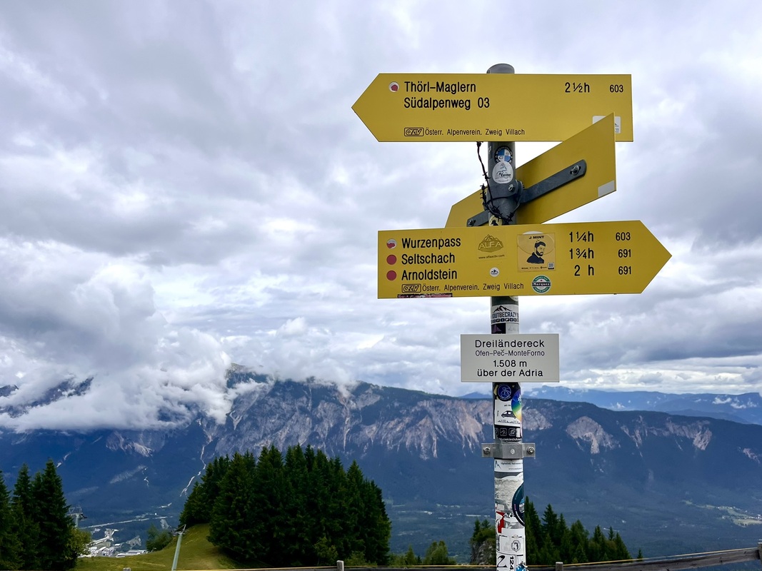 Am nächsten Tag beenden wir den slowenischen Teil der Via Alpina mit dem Aufstieg zum Dreiländereck zwischen Italien, Österreich und Slowenien. Ab jetzt geht’s hin und her zwischen Italien und Slowenien, den karnischen Höhenweg entlang.